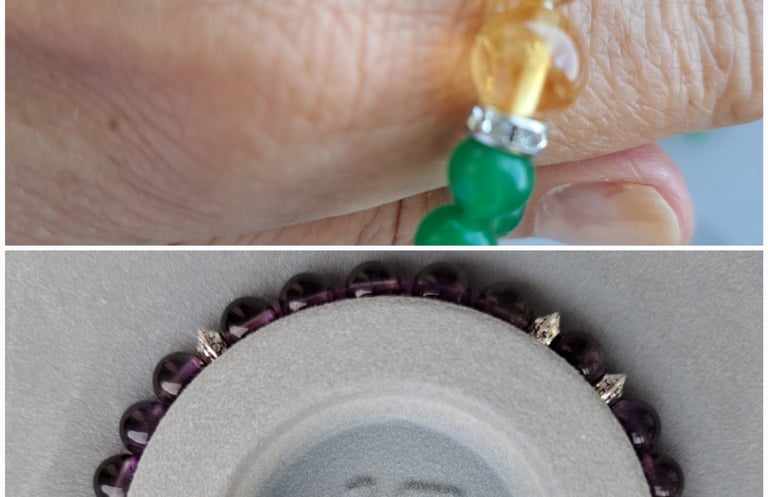Chaque pièce est soigneusement fabriquée à la main, alliant esthétique et vertus thérapeutiques des pierres naturelles pour un véritable bienfait au quotidien. J'utilise majoritairement des pierres de qualité A à AAA, de l'argent Sterling 925 et du laiton plaqué or 14/18/24K.